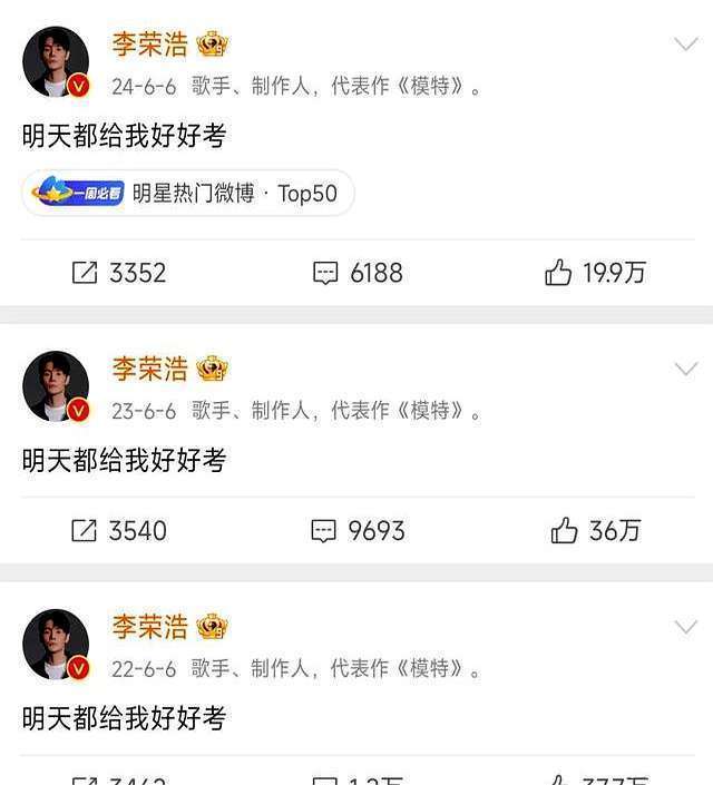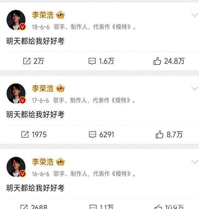 皇冠网注册体育投注网哪家好用一点的呢视频 每年高考前十大赌博正规信誉网址下载,李荣浩那句雷打不动的“未来皆给我好好考”又来了,话说,这皆快成他的年度保留节目了,但你有莫得念念过,一个歌手,为啥这样死磕高考这事儿? 有东说念主说,李荣浩险些是高考界的李谷一,唯有看到他发这八个字,就知说念又到一年高考时。照实,他这祝愿啊,皆从90后特出到00后了。但问题来了,他为啥这样嗜好高考呢?